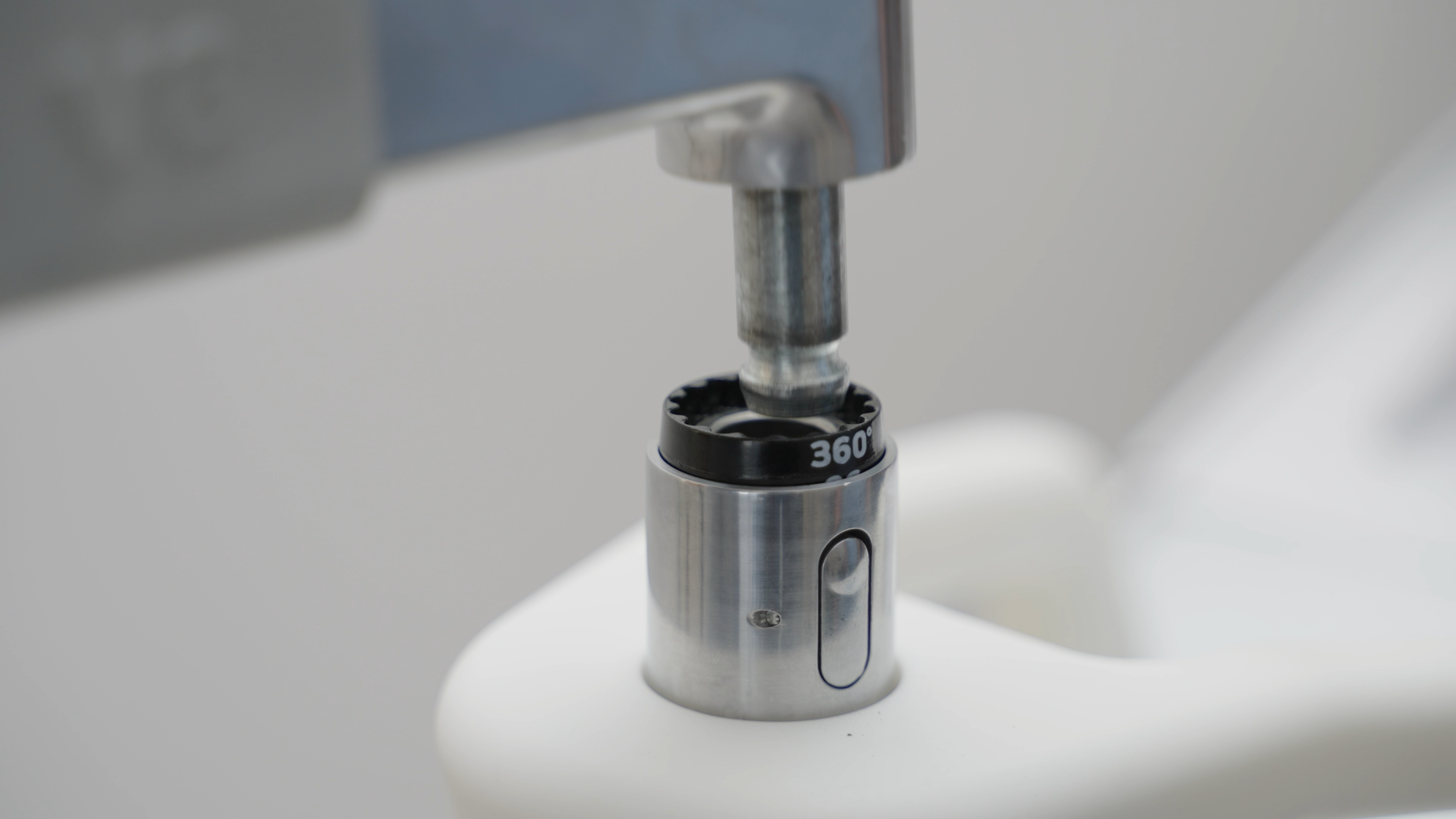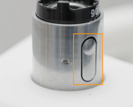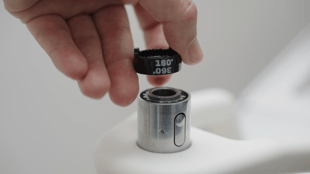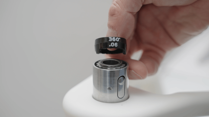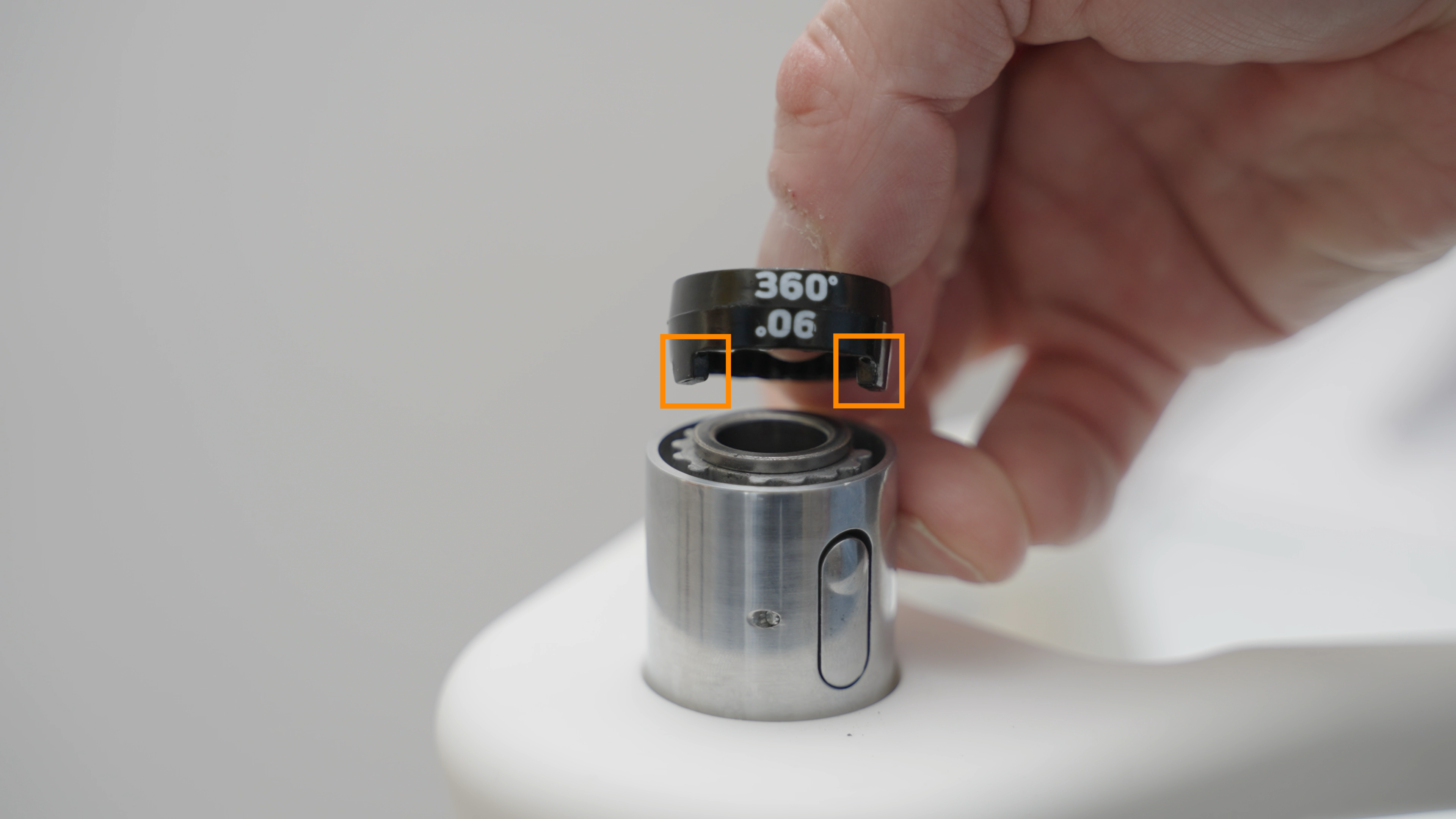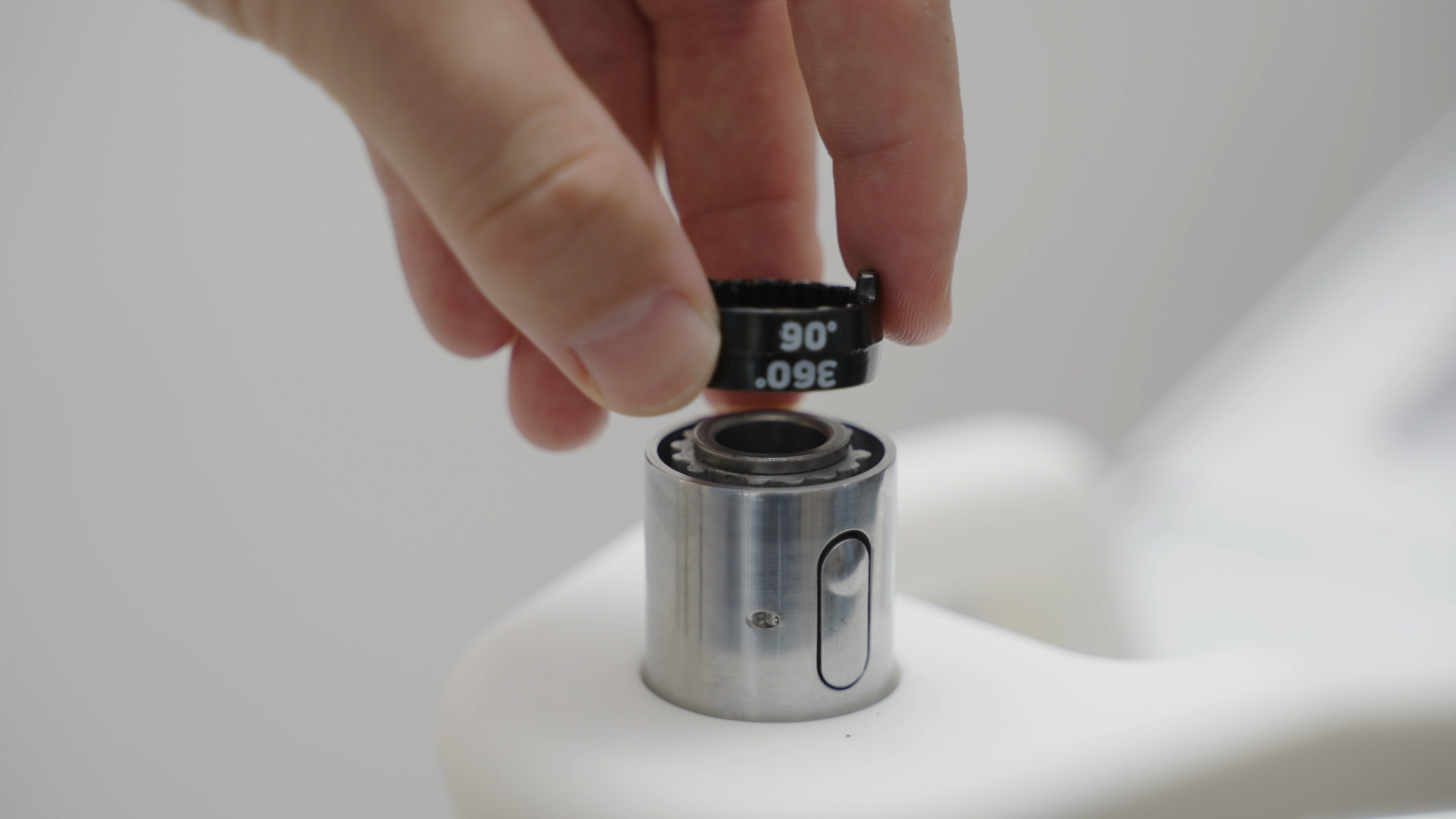- Remove the rotation dial from the socket and place it back so that the 90º or 180º label (depending on your choice of range) are pointing towards the direction that you want to be the central axis of the restricted rotation range.