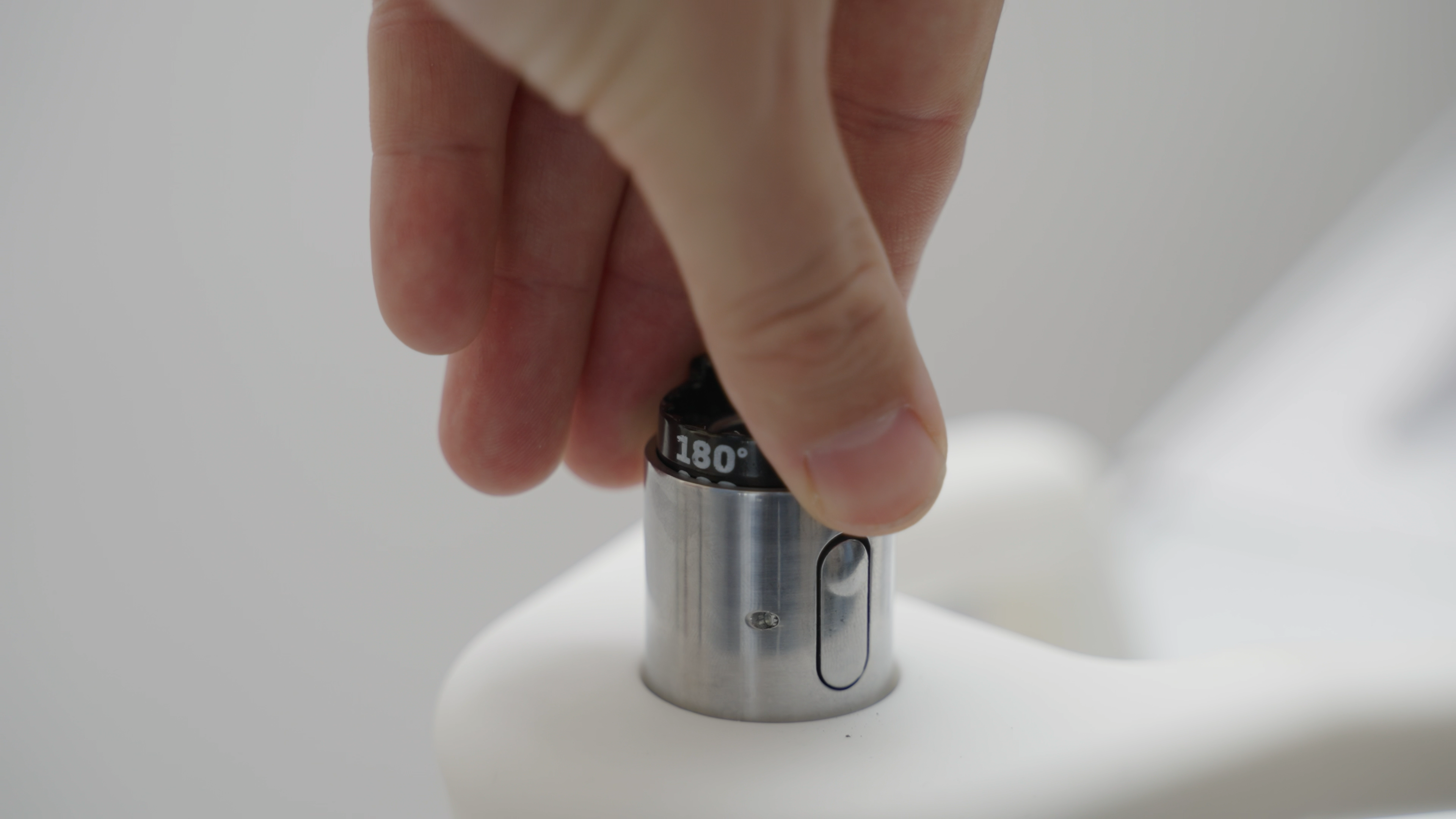- Then, the dial is placed back into the socket with the 180º label pointing forwards (in the direction opposite to the screen).